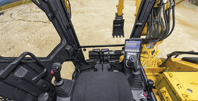 The spacious cab was developed with exceptional attention for a quiet and comfortable work environment. All the controls are easy to reach, and the console is conveniently located for immediate access to all information.