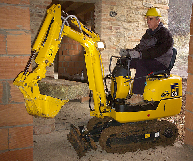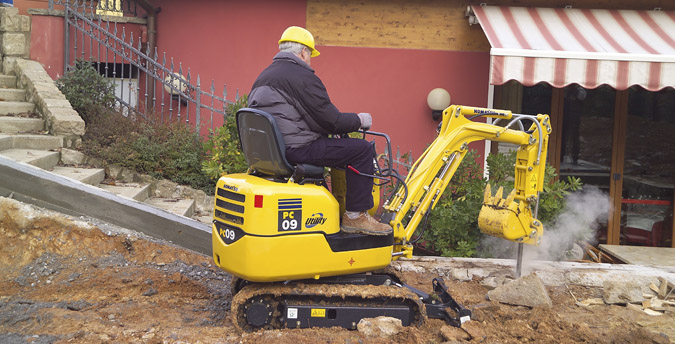 The PC09-1 micro-excavator has exactly the right power and digging force for operating in tight spaces: ideal inside buildings, for small demolition work, to set plants or install an irrigation system in a garden, and, in general, on any job site where a bigger machine can’t work or even be transported to.