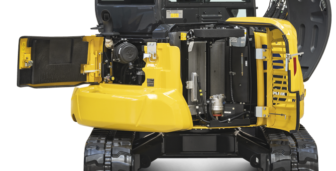 The wide opening engine bonnets provide a quick access to daily inspection points. Newly designed fully opening engine door and side cover provide a quick access to daily inspection points. For major maintenance and tasks.
