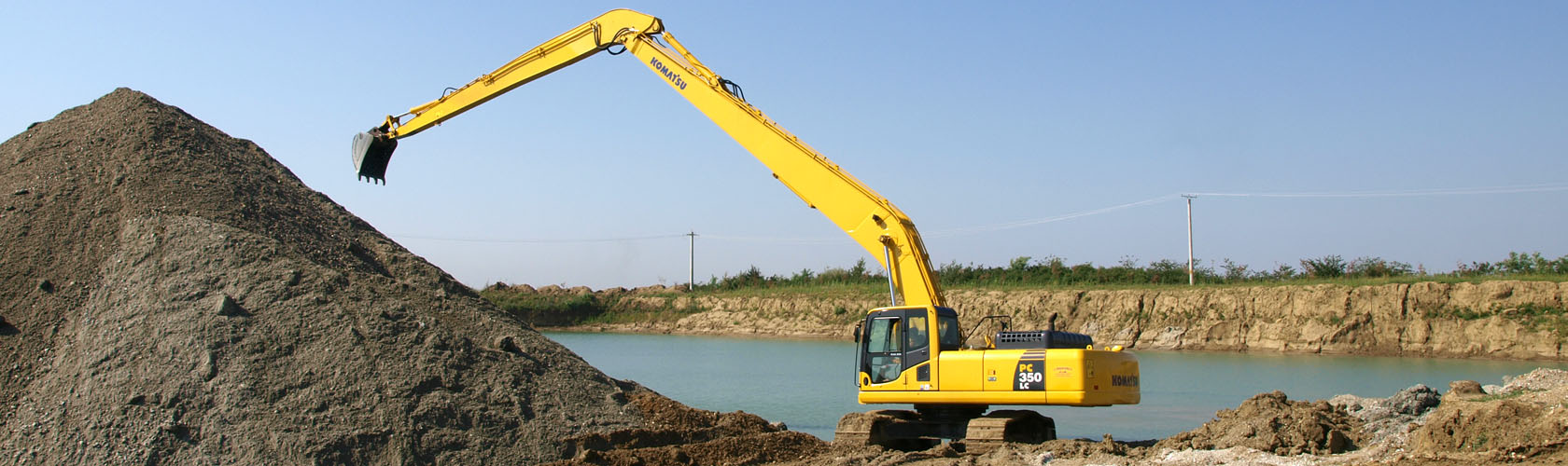 Komatsu Super Long Front excavators are suitable for digging and slope finishing. They feature an extended boom and arm and a special counterweight for long reach working.