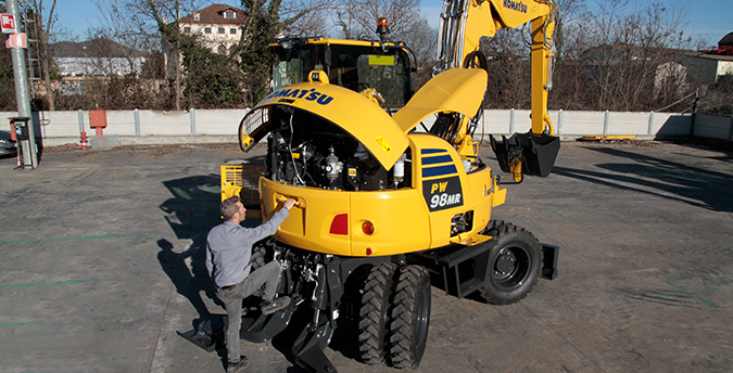 The Komatsu PW98MR-10 tight-tail excavator bridges the gap between compact and construction-sized machines and can work in a wide variety of construction, utility and landscaping applications with improved efficiency. It features lower fuel consumption, improved operator comfort and enhanced serviceability.