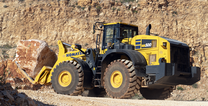 For efficient operations, stone handling requires robust machinery. Komatsu wheel loaders are well-known for their exceptionally strong design, and their long service life even when working under the toughest conditions. The Komatsu WA500-8 in its stone handling specification perfectly adapts to the special requirements of this application. The combination of the modified base machine with a wedge type quick coupler and a specially designed stone fork ensures optimum kinematics for daily work. Special buckets are available on request, and hydraulic modifications to the base machine allow higher loads. In addition, reinforced axles, an axle oil cooling system and additional counterweights provide a package that meets the application requirements.