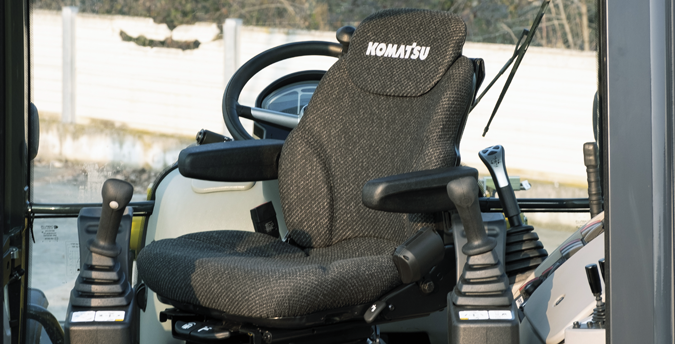 La commande de régime moteur simplifie le pilotage et le réglage du régime moteur. Le siège à suspension pneumatique est installé de série alors que la disposition des commutateurs pour la console de commande a été remaniée pour plus d’ergonomie. Il est très facile à lire et est moins affecté par l’angle de vue ou les conditions d’éclairage. Il affiche divers avertissements et des informations sur la machine dans un format simple. D’autres informations utiles comme les rapports d’opération, les paramètres de la machine et les données relatives à la maintenance sont également affichées.