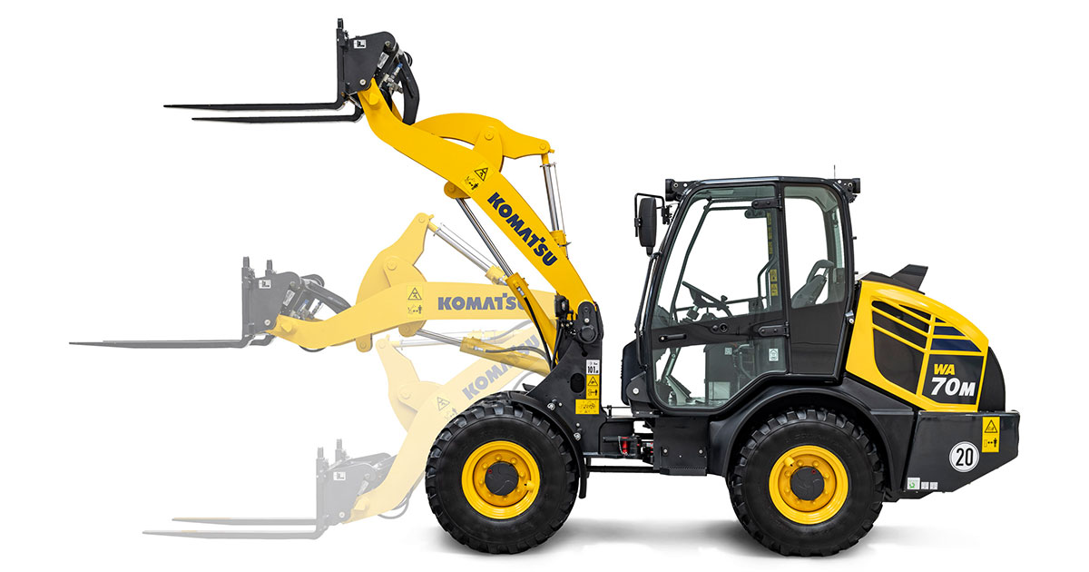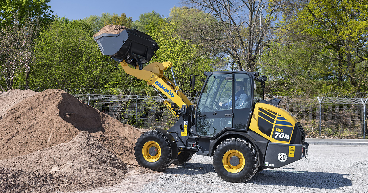 La chargeuse sur pneus compacte WA70M-8 de Komatsu offre un confort exceptionnel, une visibilité optimale, une sécurité hors pair, une interface ergonomique, une conduite sans effort et un style moderne et original pour une présence remarquable.