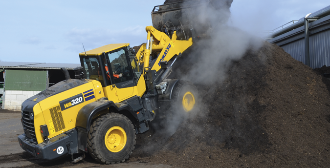La chargeuse sur pneus Komatsu WA320-8 remplit les besoins du client avec facilité et offre une grande polyvalence.