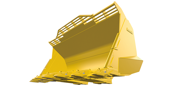 De série, Komatsu propose des godets jusqu’à 14,5 m3 dotés d’une nouvelle casquette de protection ainsi qu'un angle de plancher et un rayon de fond de godet plus grands. Ils offrent une meilleure attaque et un plus large volume de chargement. Vous gagnez ainsi en productivité tout en limitant les coûts. Les dents ultra-résistantes et les deux écarte-pierre latéraux augmentent le temps d’utilisation tout en réduisant les dégâts causés aux pneus, afin de limiter les frais d’entretien.
