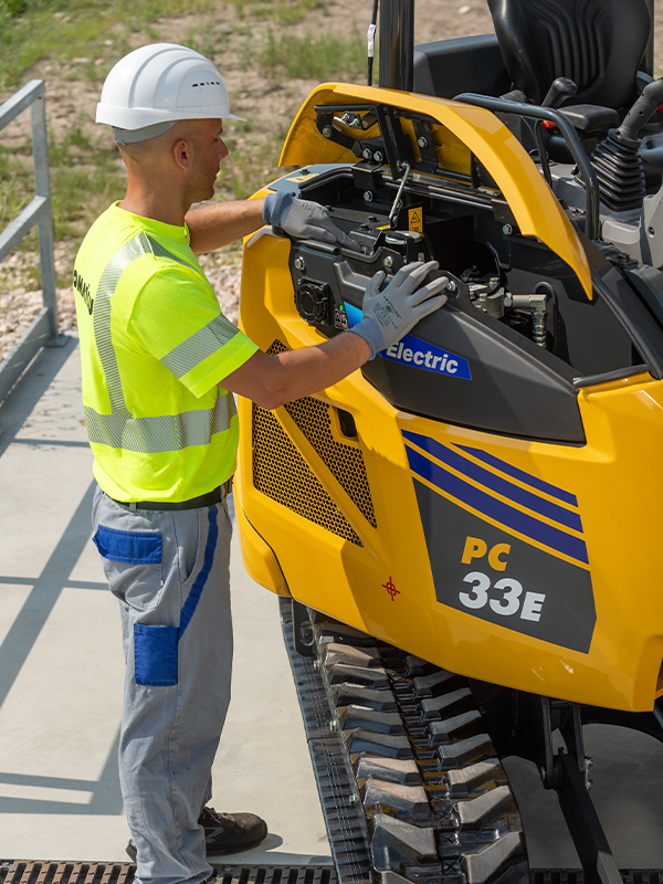 E-Support est un programme d'assistance livré de série avec votre nouvelle mini-pelle électrique Komatsu PC33E-6. Il couvre trois aspects: un entretien périodique réalisé par des techniciens formés par Komatsu, avec des pièces Komatsu d'origine, une garantie supplémentaire sur la machine et une garantie sur certains composants de la chaîne cinématique. Contactez votre distributeur local Komatsu pour les termes et conditions.